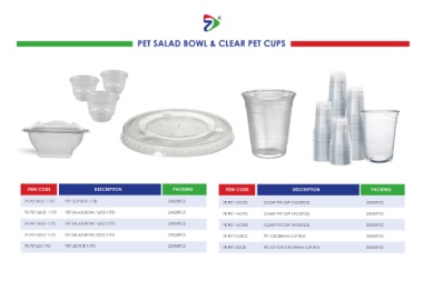7E-PET-12OZ- 117D PET SALAD BOWL 12OZ 117D 20X25PCS 7E-PET-16OZ92 CLEAR PET CUP 16OZ(92D) 20X50PCS